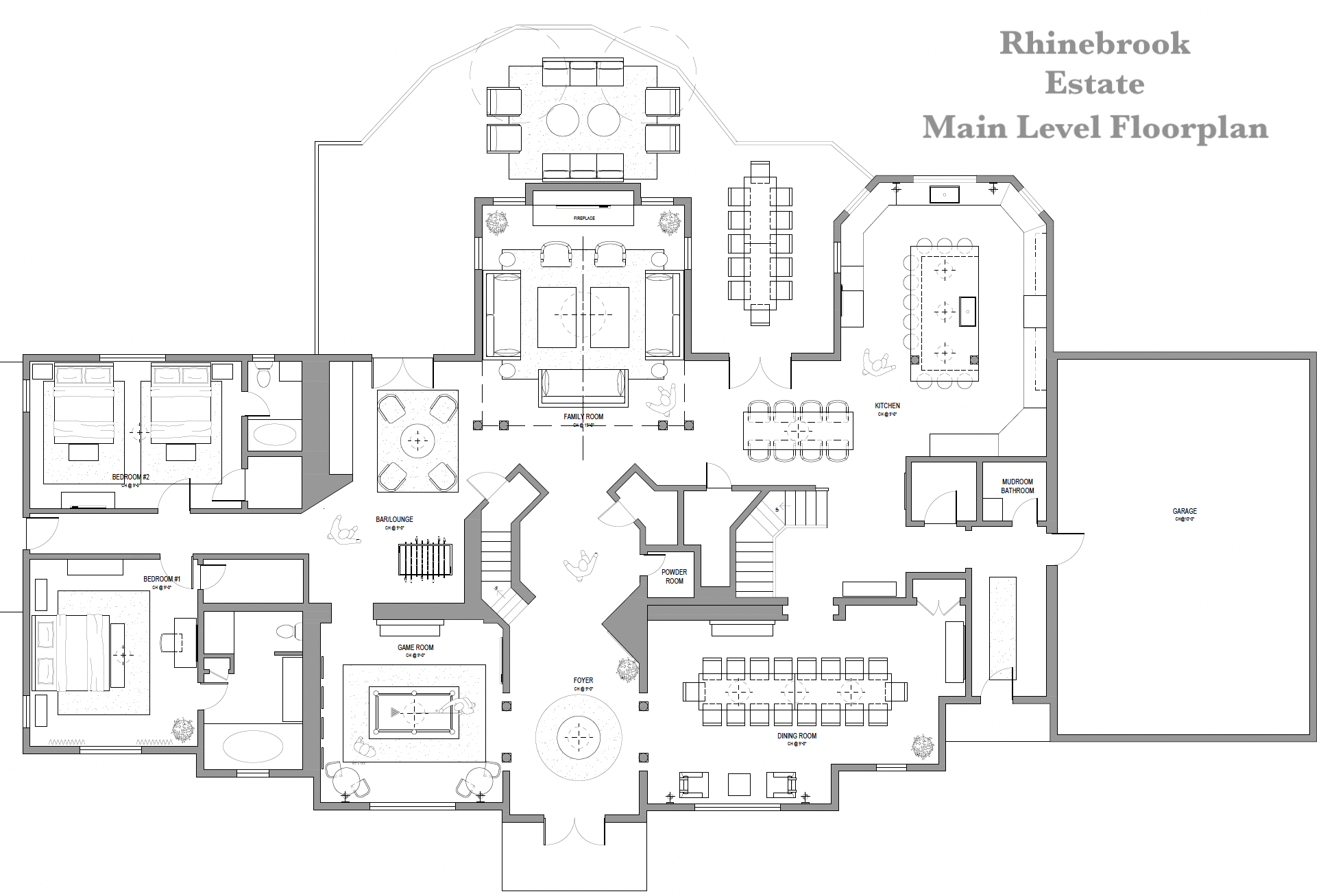 Rhinebrook Estate leaves nothing to be desired. Ideal for family gatherings, informal retreats and health and wellness getaways. The 8 bedroom, 11 bathroom completely private estate is truly one of a kind. Sitting on 26 sprawling acres just 90 minutes from NYC without another home in sight, the 9000 square foot mansion has been tastefully designed by South Trace Interiors.
